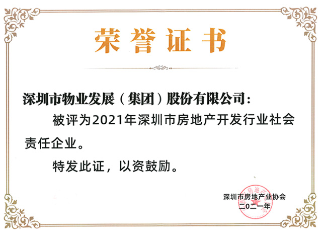 2021年深圳市房地产开发行业社会责任企业